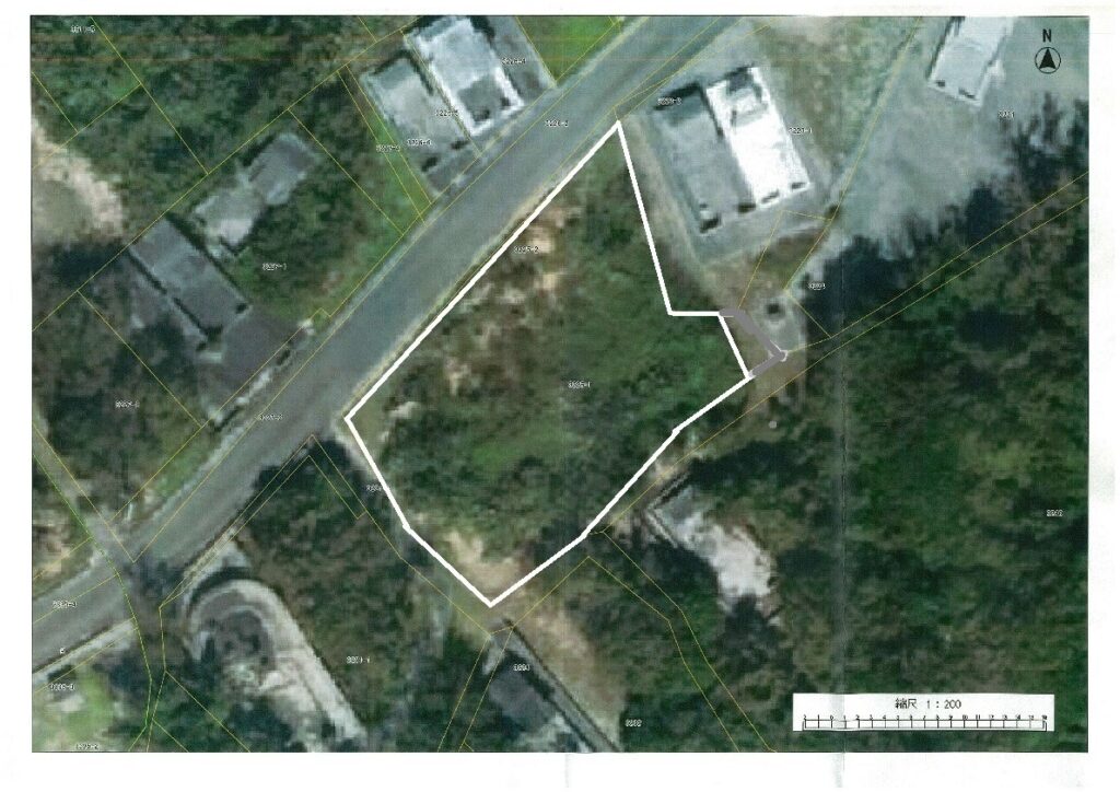 1,173万円。597.09㎡≒180.62坪。地目畑(要5条)。木に囲まれた静かな地域です。